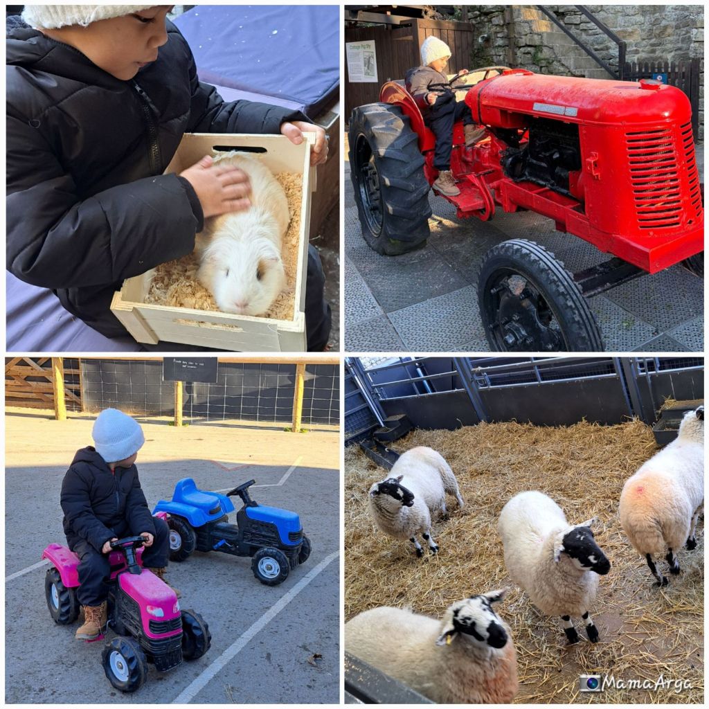 Setelah puas berkeliling di dalam rumah, kami lanjut ke farm yard. Arga happy banget bisa lihat banyak hewan, mulai dari guinea pig, kuda, keledai, ayam, domba, sapi, bahkan babi yang berukuran sangat besar. Di sana Arga juga sempat cobain naik traktor.