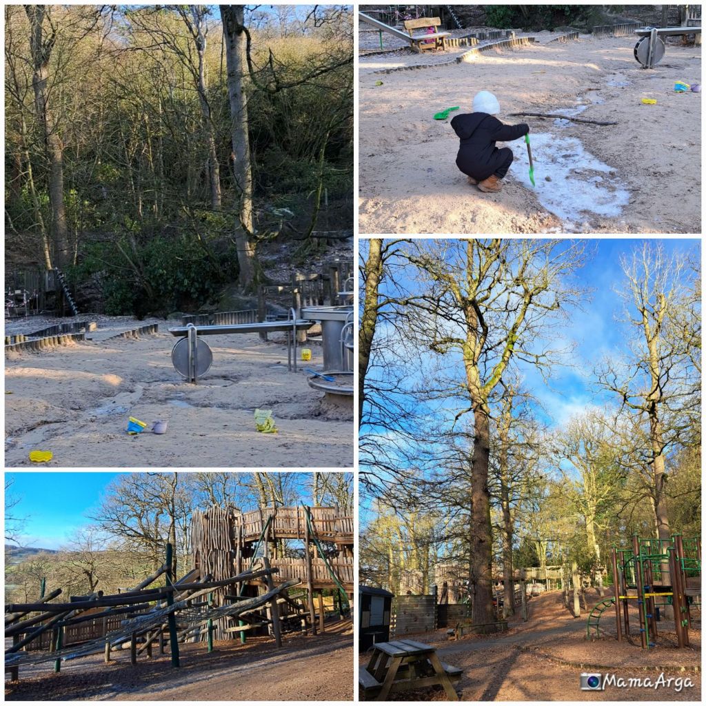 Selanjutnya kami ke Adventure Playground. Ini bagian yang paling Arga tunggu-tunggu. Playgroundnya luas banget, suasananya juga sejuk karena berada di dekat hutan. Walaupun dekat hutan tapi ngga menakutkan kok karena ramah keluarga banget. Waktu itu tergolong masih pagi dan masih sepi jadi Arga bisa bebas bermain sepuasnya. Ada area bermain pasir lengkap dengan peralatan mainnya, bisa main air juga (sayangnya waktu itu lagi membeku), area bermain toddler dan area bermain untuk anak dengan usia lebih besar —lebih seru dan penuh tantangan.