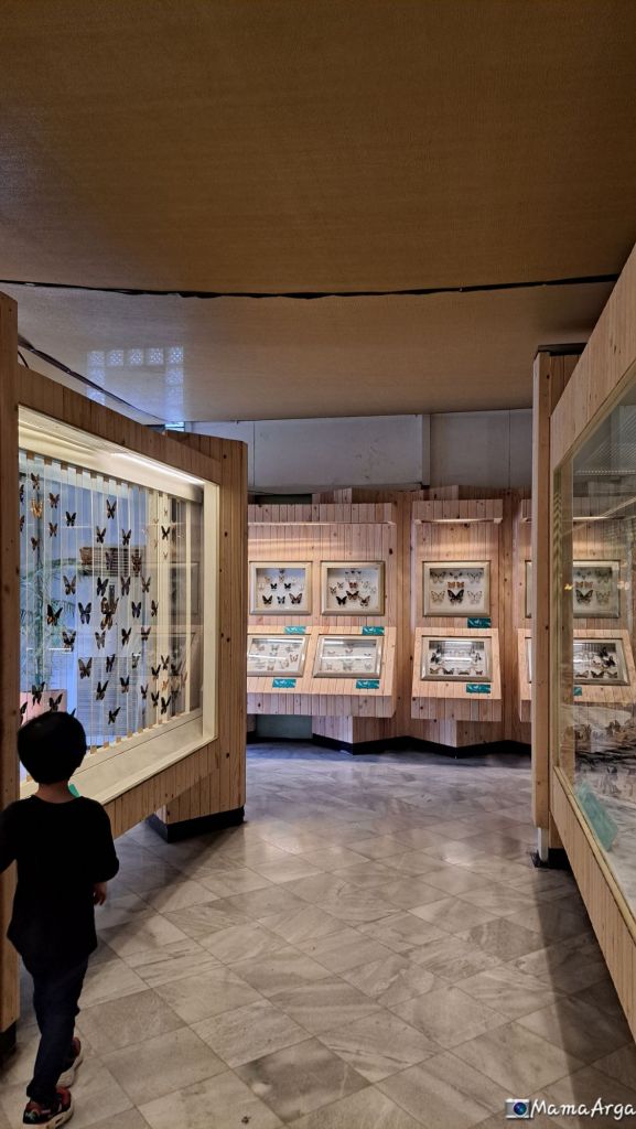 Masih semangat, kami lanjut ke Museum Serangga. Meski tak terlalu besar, museum ini menampilkan berbagai jenis serangga dalam bentuk diorama, lengkap dengan informasi yang menambah pengetahuan. Di dalamnya terdapat berbagai koleksi kupu-kupu, kumbang, belalang, dan serangga unik lainnya. Ada juga area taman kupu-kupu kecil yang sayangnya sedang tidak banyak kupu-kupunya.