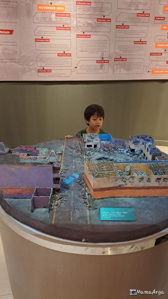 Ruang bermain anak yang cukup luas dan lengkap, bikin betah.Arga tertarik banget sama maket TKP Bom Bali I ini, lama banget perhatiin saking penasarannya
