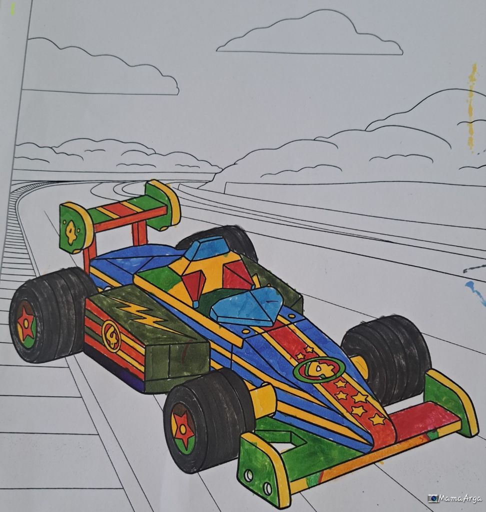 “Mobil Jet Super Cepat” dengan kombinasi warna hijau kuning untuk menunjukkan kecepatam dan energi“Monster Truck Ganas” dengan warna dominan merah, orange dan hitam yang membuatnya terlihat seperti kendaraan monster dari dunia balap ekstrem“Mobil Balap Colourful” walaupun di dunia balap yang menegangkan tapi pilihan warna yang cerah menjadikan kesan ceria
