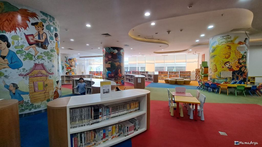 Tempat yang tenang dan sejuk untuk istirahat sejenak. Ada area khusus anak-anak dengan banyak buku bergambar, dilengkapi area duduk yang nyaman, serta ada toilet khusus anak juga. Untuk masuk ke sini juga free lho.