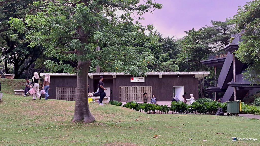 Fasilitas toilet dan musholla di dekat pintu masuk Hutan Kota GBK